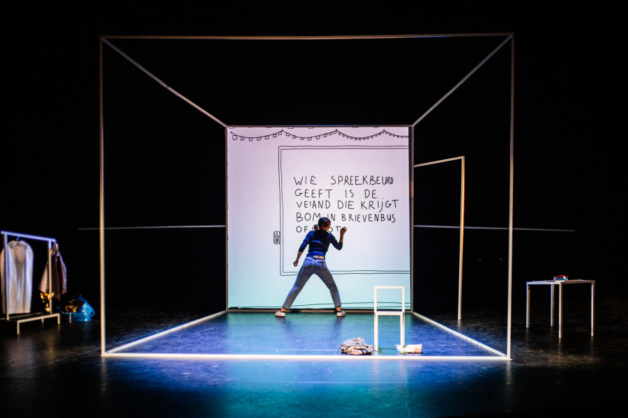 Dounia woont met haar papa en broers in een hoge toren aan de rand van de stad. Ze heeft cool voor twee en plannen voor drie. En vandaag spreekt ze jullie toe. Want ze heeft iets belangrijks te vertellen. Praten doet ze op haar éigen manier. Zoals ze alles doet op háár manier. Klinkt het niet dan botst het maar. Ook goed! Ze is hier om gehoord te worden...